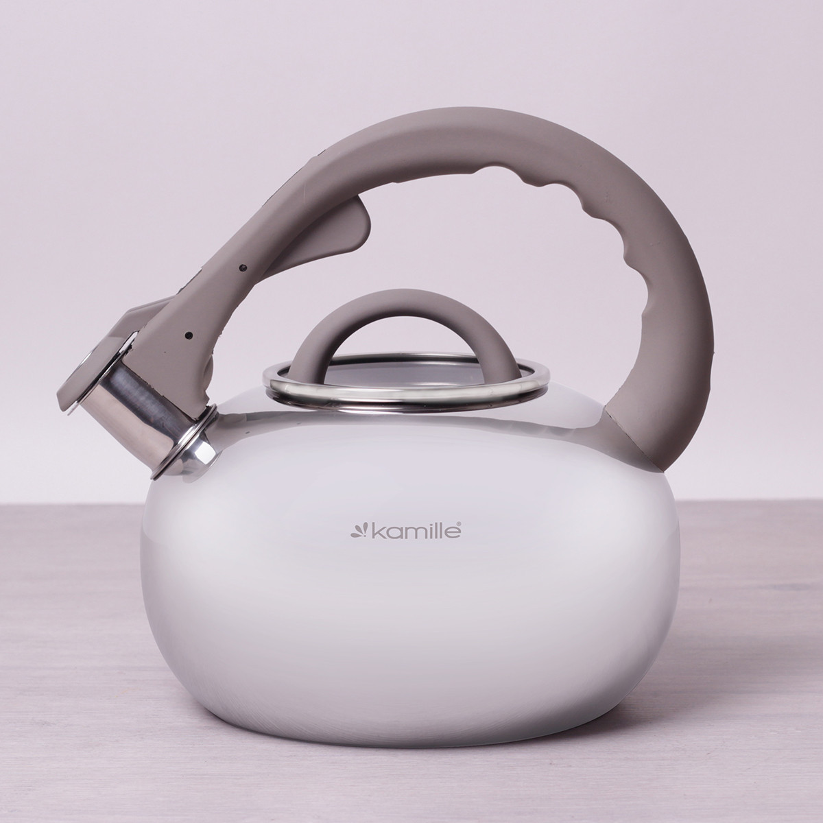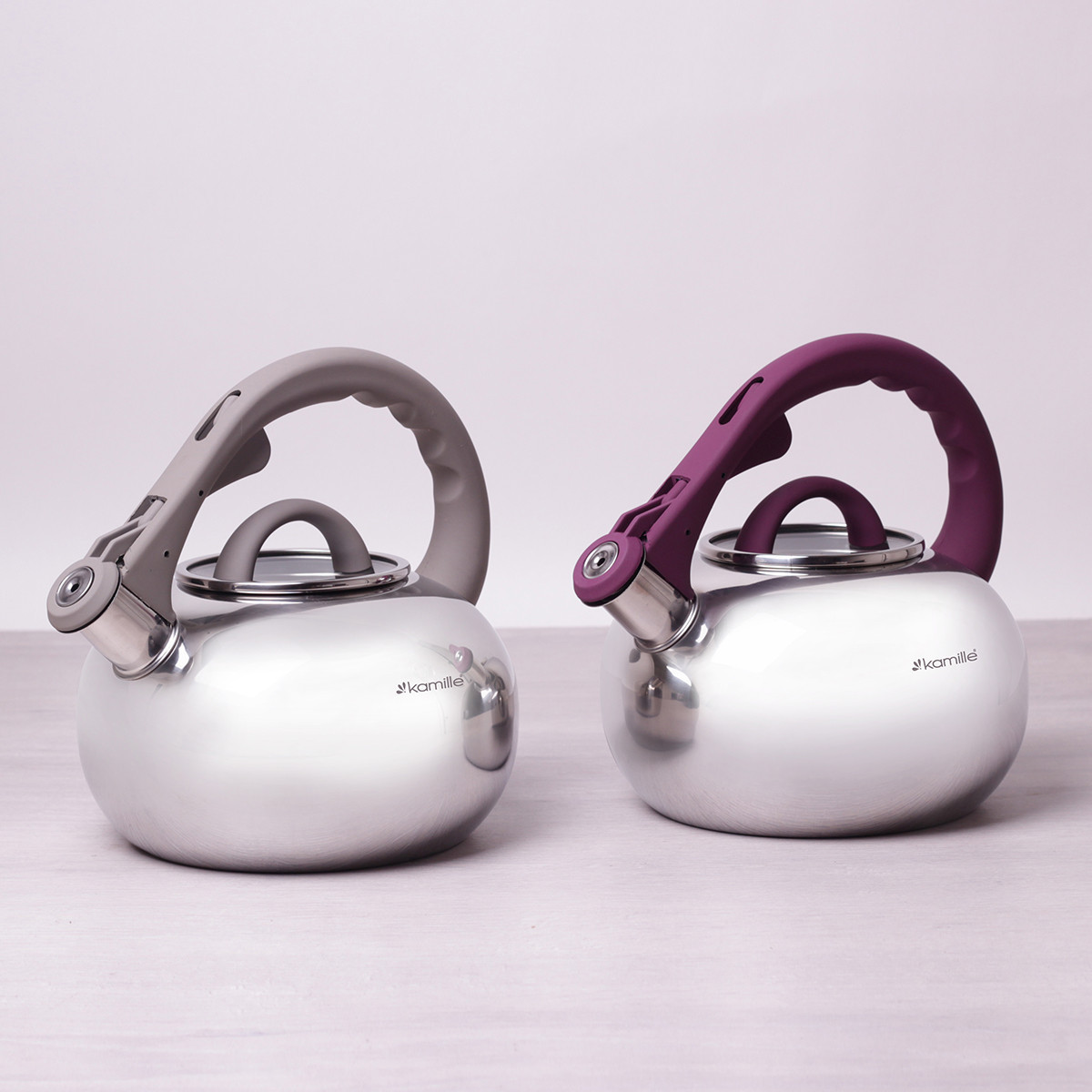 Чайник Kamille фиолетовый 2.8л из нержавеющей стали со свистком и стеклянн