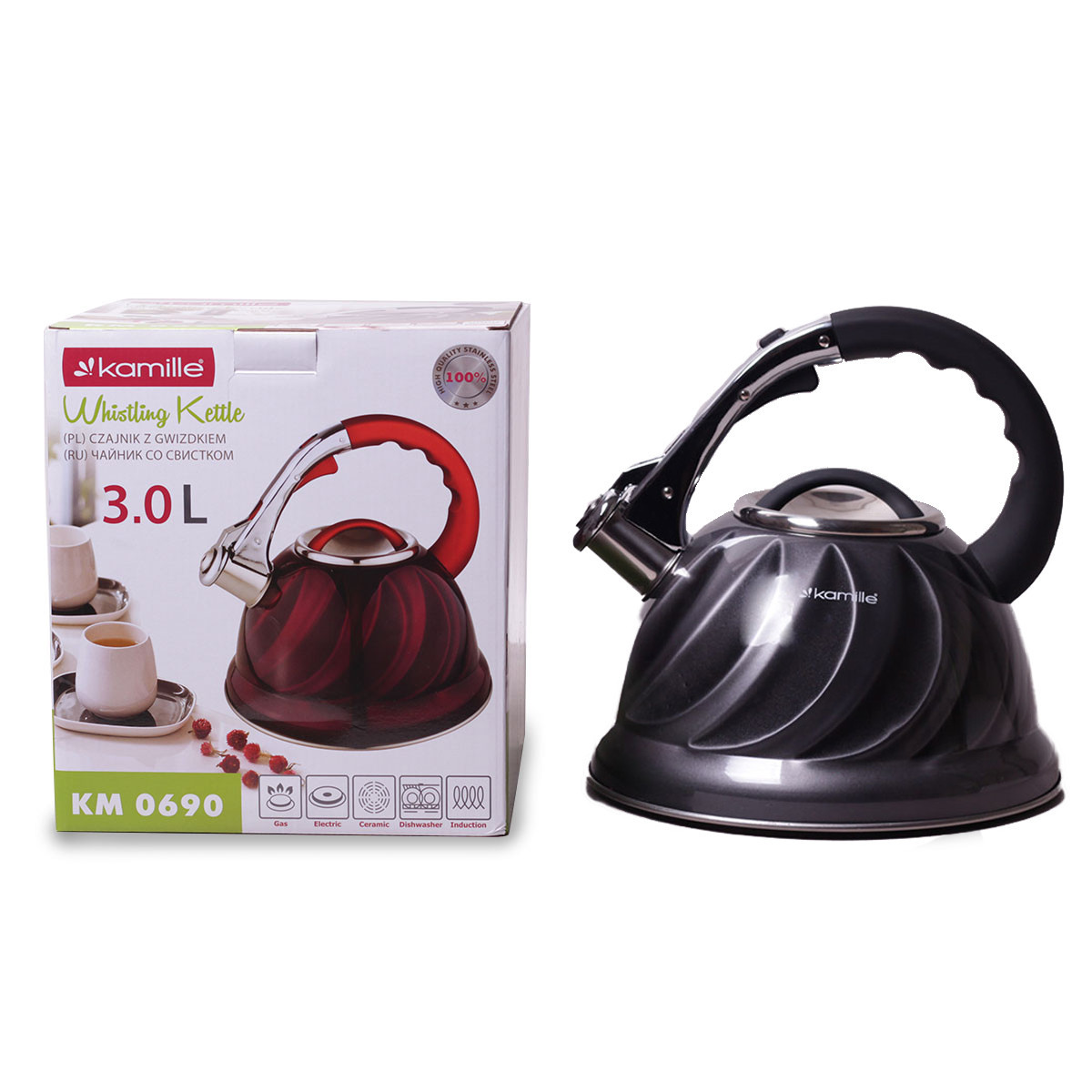 Чайник Kamille серый 3л из нержавеющей стали со свистком Km-0690nsr