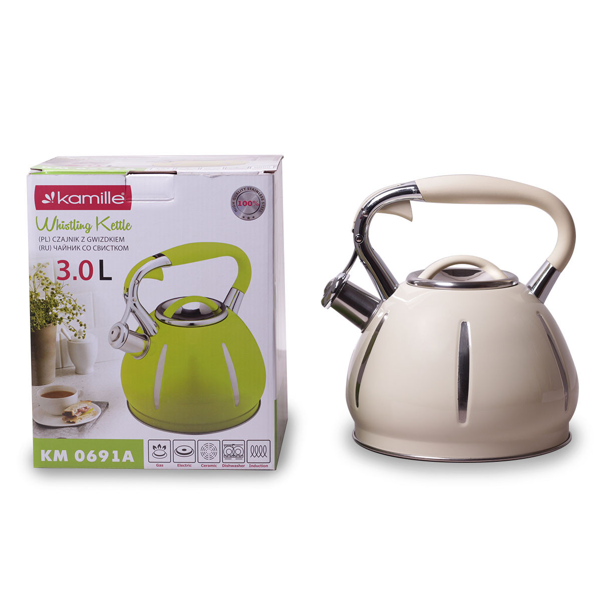 Чайник 3 л из нержавеющей стали со свистком Kamille Km-0691a
