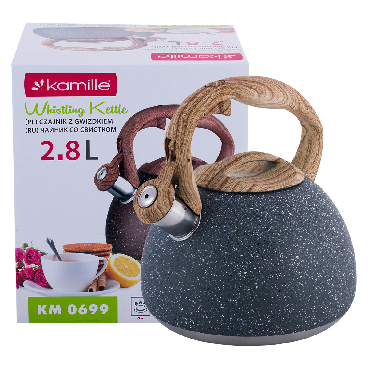 Чайник Kamille темно-серый 2.8л из нержавеющей стали со свистком и бакелит