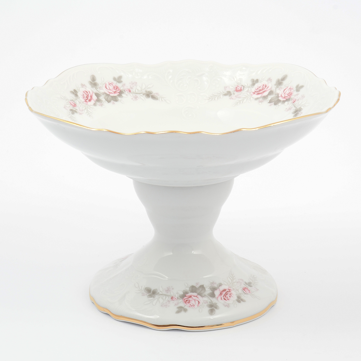 Ваза для фруктов на ножке Bernadotte серая роза золото 25 см