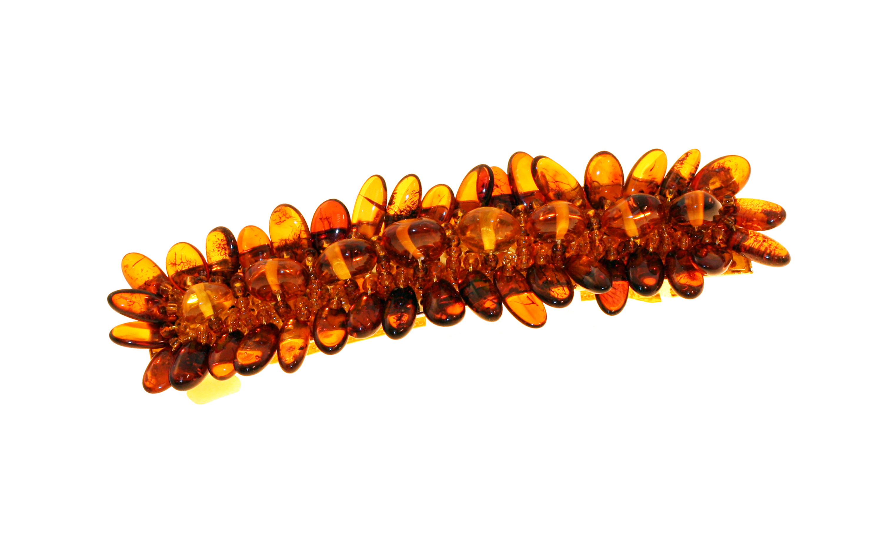 Заколка-автомат из янтаря. Состав: янтарь, бисер. Оттенок изделия может отличаться от оттенка на фото. В случае отсутствия товара на складе срок изготовления 2-3 недели.