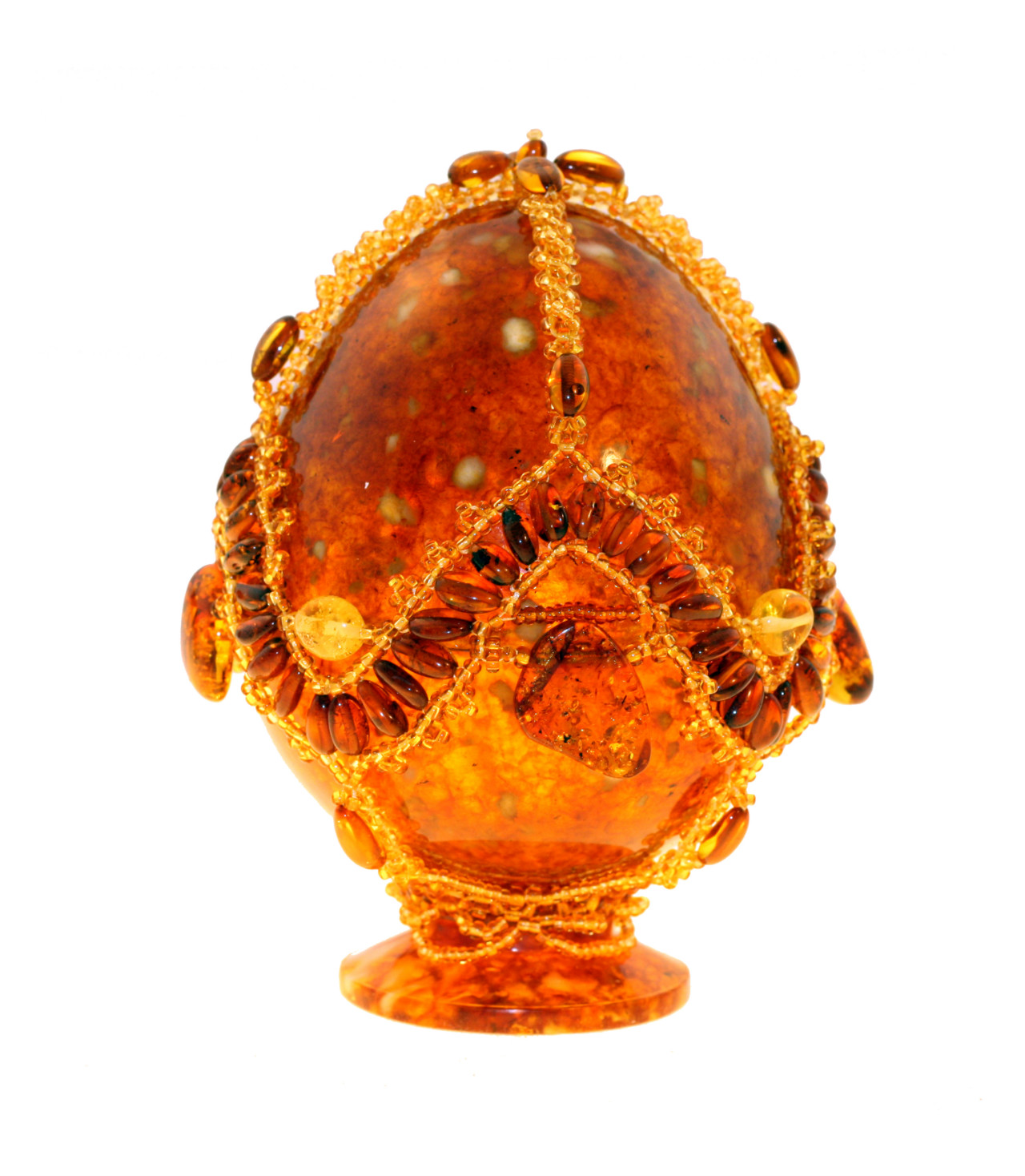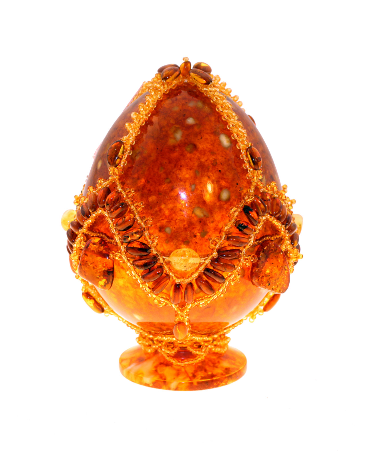 Яйцо пасхальное из янтаря. Полностью ручная работа. Состав: янтарь натуральный, бисер. Высота 12 см, диаметр 8 см. Оттенок изделия может не совпадать с оттенком на фото. Поставляется в подарочном футляре. В случае отсутствия товара на складе, срок доставки - от 3 недель.  развернуть описание ▼