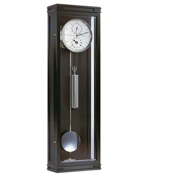 Настенные механические часы 0761-47-875. Часы настенные механические Hermle 0761-47-875 с маятником Часы настенные механические Hermle 0761-47-875 c маятником имеют надежный механизм. Часы без боя и мелодии! Корпус часов сделан из массива дерева и отполирован вручную. Граненое стекло на фронтальной и боковых стенках. Специальный циферблат с отдельными секундной, минутной и часовой стрелками. Специально разработанный высокоточный механизм, позволяет заводить часы 1 раз в месяц. Анкер с рубиновыми элементами. Для повышения надежности в механизме используются 6 шарикоподшипников и 6 рубиновых втулок. Гиря с вольфрамовым покрытием. Тросовый подвес гири. Каждые часы имеют индивидуальный номер. Характеристики часов Hermle 0761-47-875: Размер часов: 93.5x26х13 см Материал: массив дерева (черное дерево), граненое стекло. Завод (ход) 1 месяц. Производство: Германия. Гарантия: 2 года.