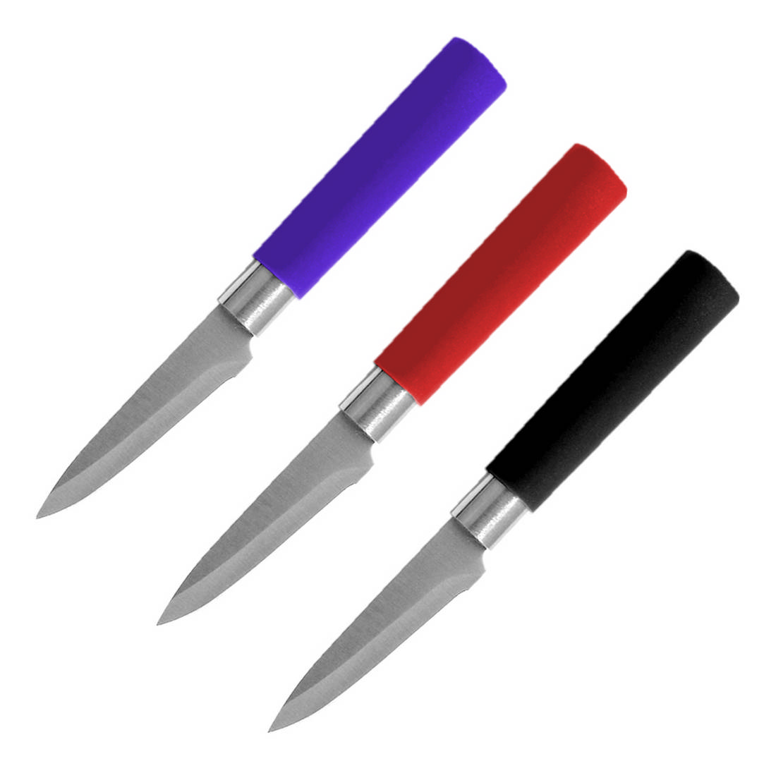 Нож для овощей mal-07p-mix. Бренд Mallony Страна КИТАЙ Нож для овощей Длина лезвия: 8 см Толщина лезвия 1,2 мм Литая противоскользящая ручка Материал: нержавеющая сталь, пластик Цвет ручки микс: черный, синий, красный упаковка: одинарный блистер  развернуть описание ▼