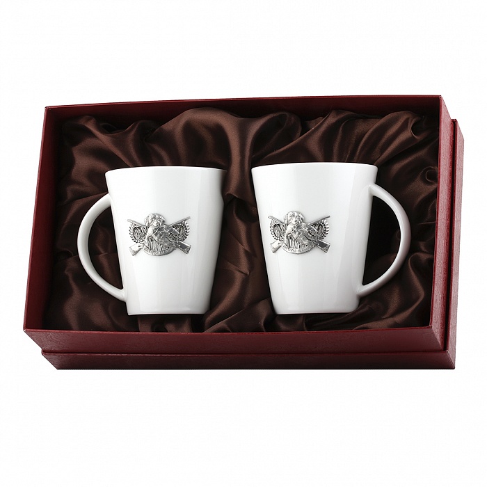 Набор из двух чашек с накладкой охота в к/к. Код товара: 08010329 Детали: В наборе 2 чашки (английский фарфор) с накладками, футляр из дизайнерского картона с шелковым ложементом.