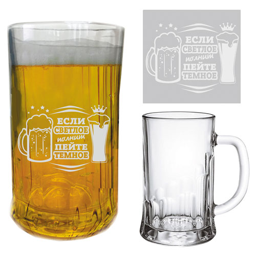 Кружка пивная с гравировкой если светлое полнит - пейте темное!