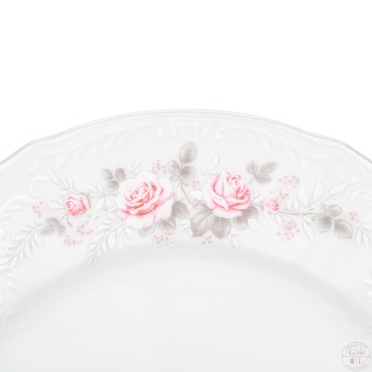 Набор тарелок bernadotte серая роза платина 25 см(6 шт). Набор тарелок 25 см Бернадотт Серая роза Согласитесь, что гораздо приятнее есть приготовленное блюдо из красивой и качественной тарелки? С этим не поспоришь! Набор тарелок из серии Бернадотт Серая роза Платина – это отдельное произведение фарфорового искусства, которым хочется любоваться, как картиной, вышедшей из-под кисти художника. Нежные розы, окутанные серебристой дымкой платины, на белоснежном полотне фарфора – это шедевр. Тип товара Тарелки (Чехия, Фарфор, Bernadotte) Страна происхождения Чехия Материал Фарфор Бренд Bernadotte Серия Серая роза платина Назначение Предмет домашнего обихода из фарфора