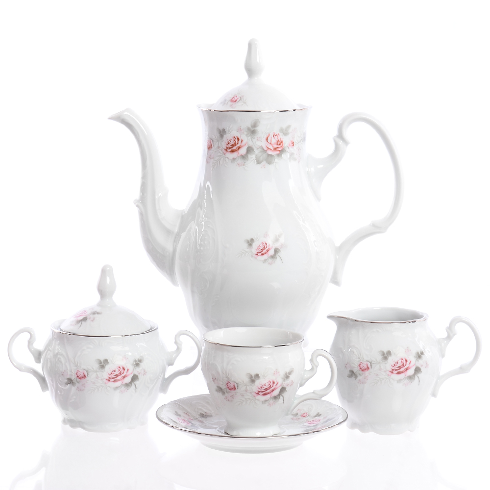 Кофейный сервиз на 6 персон Bernadotte серая роза платина 17 предметов