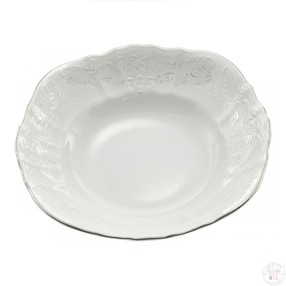 Салатник 23 см Бернадотт Платиновый узор Салата на столе много не бывает, поэтому такой вместительный салатник всегда уместен в арсенале каждой хозяюшки. В нем есть все, что нужно для качественной посуды: эстетичный внешний вид, функциональность и простота в использовании.