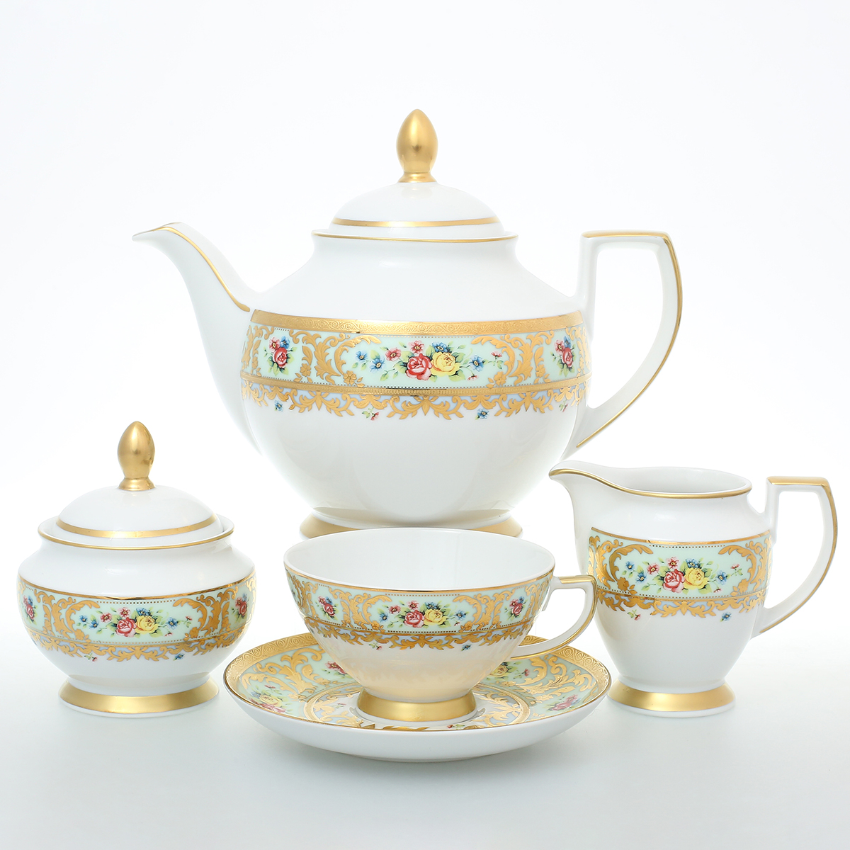 Чайный сервиз на 6 персон 15 предметов Vienna Seladon Gold