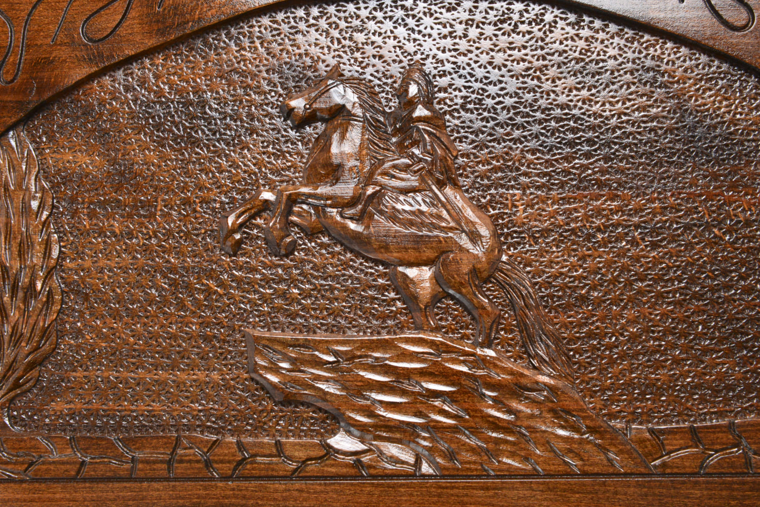 Нарды резные медный всадник большие 60, sargsyan. Материал Бук Артикул 099-35 Состояние Новое Упаковка Чехол Производитель Саркисян Страна Армения Диаметр Фишки (см) 2,9 Мастер Спартак Саркисян Поле для шашек Есть Размер клетки для шашек 3х3 (см) Фишки с подложкой Да Кости (шт) 2 Ручка Нет Исполнение Резные Размер в закрытом состоянии (Д x Ш x В) (см) 60х31х6 Размер в открытом состоянии (Д x Ш x В) (см) 60х62х3 Ложемент для хранения фишек (лунки) Есть