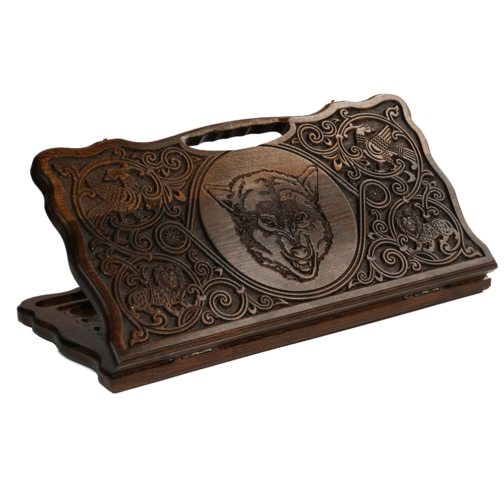 Нарды резные люкс волк большие 60, harutyunyan. Материал Бук Артикул 099-86 Состояние Новое Упаковка Чехол Производитель Арутюнян Страна Армения Диаметр Фишки (см) 2,9 Мастер Карен Арутюнян Поле для шашек Есть Размер клетки для шашек 3х3 (см) Фишки с подложкой Да Кости (шт) 2 Ручка Есть Исполнение Резные Размер в закрытом состоянии (Д x Ш x В) (см) 60х31х6 Размер в открытом состоянии (Д x Ш x В) (см) 60х62х3 Ложемент для хранения фишек (лунки) Есть