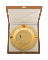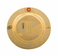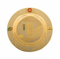 Лучший подарок для партнера по бизнесу – дорогая позолоченная тарель с нанесенной корпоративной символикой. Уникальное изделие ручное работы изготавливается из латуни и покрывается золотом и никелем. На лицевую часть методом многоступенчатой гравировки наносится сложный узор, центральную часть украшает проработанный до мельчайших деталей рисунок.