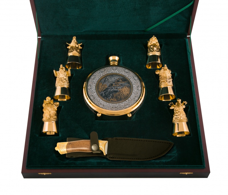 Набор охотничий "утиная охота" ( нож, фляга, 6 рюмок) златоуст