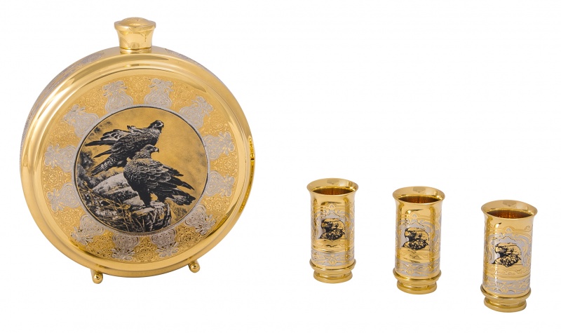 Набор охотничий "ястреб" (фляга большая, 3 стопки) златоуст