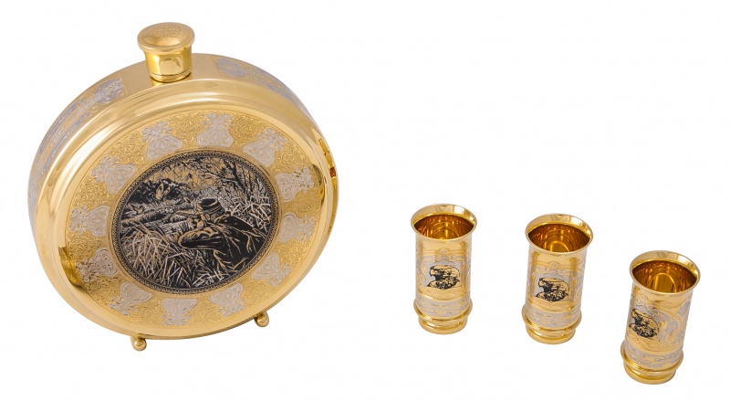 Набор охотничий "сезон охоты" (фляга большая, 3 стопки) златоуст