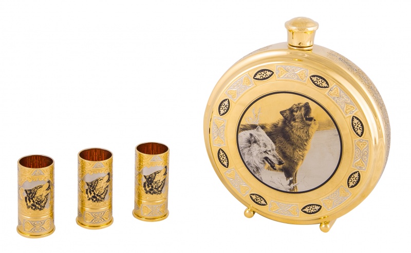 Набор охотничий "волк" (фляга большая, 3 стопки)