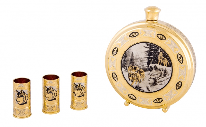 Набор охотничий "волчья стая" (фляга большая, 3 стопки)