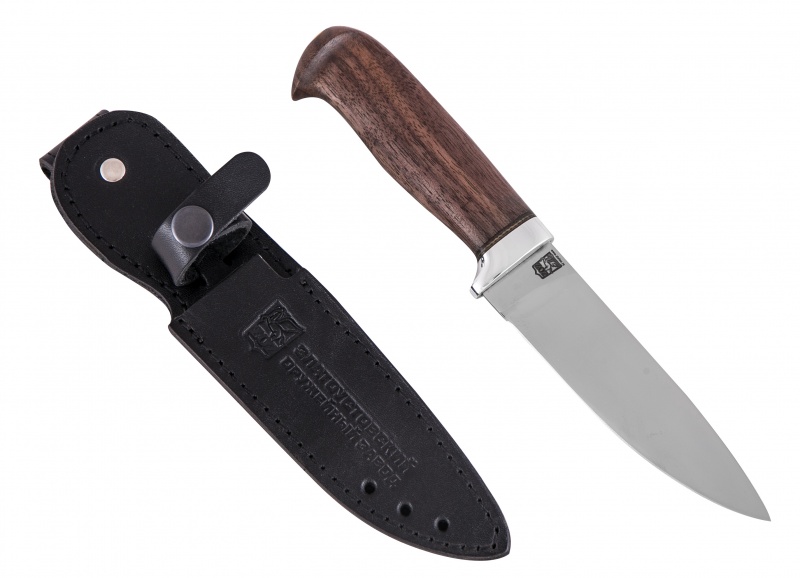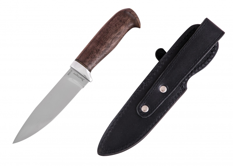 Нож шашлычный (сталь 95x18, орех). Материал: клинок из стали 95x18; рукоять из ореха; тыльник, гарда - алюминий; кожаные ножны. Техника исполнения: токарные и слесарные работы, полировка. ? ×сталь Тип стали Кованная 95x18 Общая длина, мм 250 Длина клинка, мм 130 Ширина клинка, мм 30 Толщина клинка, мм 2.4 Твердость клинка, HRC 58 Вес ножа, кг 0.105 Вес брутто, кг 0.19