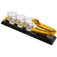 Сувенир подводная лодка. Материал: змеевик, латунь. Покрытия: золотом 999,9; никелем. Техника исполнения: токарные и слесарные работы, художественное литье, полировка. Художественное литье – это отливка художественных произведений с высокой детализации элементов работы. Наши дизайнеры и ювелиры создают поистине уникальные изделия. А высокие требования точности изготовления литьевых форм с высоким рельефом, в зависимости от приемов работы, обеспечивается использованием современных 3D технологий. Размеры: длина 315 мм. высота 95 мм. Покрытие Гальванический метод