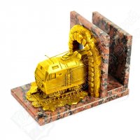 Сувенир электровоз из тоннеля. Материал: яшма, лемезит. Покрытия: золотом 999,9; никелем. Техника исполнения: токарные и слесарные работы, художественное литье, полировка. Художественное литье – это отливка художественных произведений с высокой детализации элементов работы. Наши дизайнеры и ювелиры создают поистине уникальные изделия. А высокие требования точности изготовления литьевых форм с высоким рельефом, в зависимости от приемов работы, обеспечивается использованием современных 3D технологий. Размеры: высота 150 мм. ширина 90 мм. глубина 90 мм. Покрытие Гальванический метод