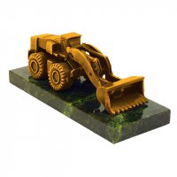 Сувенир бульдозер. Материал: змеевик, латунь. Покрытия: золотом 999,9; никелем. Техника исполнения: токарные и слесарные работы, художественное литье, полировка. Стоимость зависит от размеров и используемого материала (из серебра, золота или медного сплава с покрытием из драгоценных металлов). Художественное литье – это отливка художественных произведений с высокой детализации элементов работы. Наши дизайнеры и ювелиры создают поистине уникальные изделия. А высокие требования точности изготовления литьевых форм с высоким рельефом, в зависимости от приемов работы, обеспечивается использованием современных 3D технологий. Изготовленное клише, например, с логотипом компании, профилем юбиляра, Гербом страны или барельефом Героя послужит бесценным подарком для родных, близких, коллег по работе и бизнесу. Размеры: высота 150 мм. Покрытие Гальванический метод