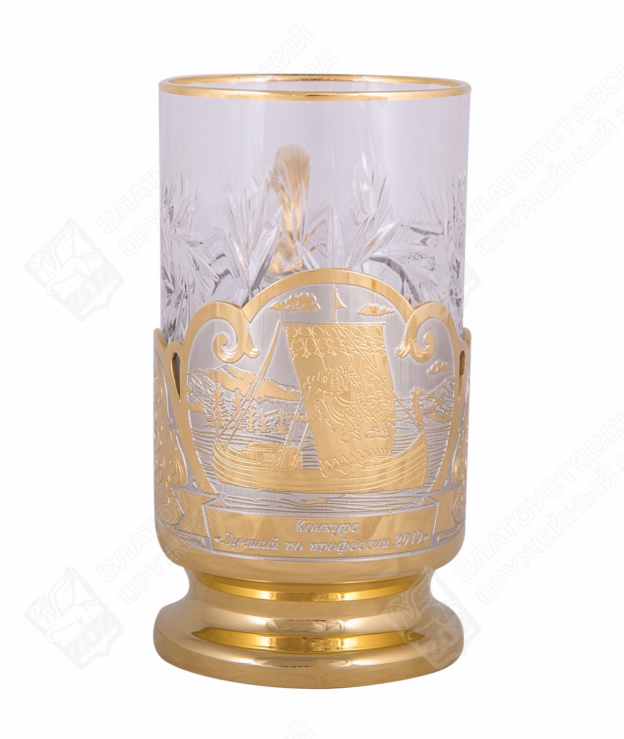 Подстаканник лучший по професии 2019. Материал: латунь, хрусталь. Покрытие: золотом 999,9; никелем. Техника исполнения: токарные и слесарные работы, рисовка кистью на металле, многоступенчатая гравировка иглой по лаку, травление, ручная подрезка, полировка. Стать лучшим на своем поприще хочет каждый специалист, но далеко не во всех отраслях проводятся подобные соревнования. Настало время порадовать близкого человека или сотрудника, подарив ему подстаканник «Лучший по профессии 2019». Подарок ценен сам по себе, ведь он выполняется мастерами вручную, из чистого хрусталя и качественной латуни. Совершенно не важно, кем работает получатель. Важно, что он любит свое дело и всячески стремится в нем преуспеть. Кто знает, возможно именно этот презент станет толчком для покорения новых высот! Размер: высота 120 мм. ширина 70 мм. Покрытие Гальванический метод