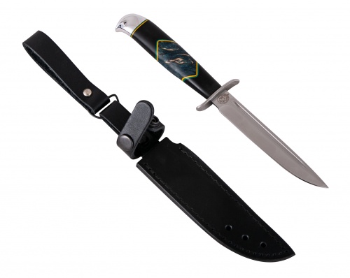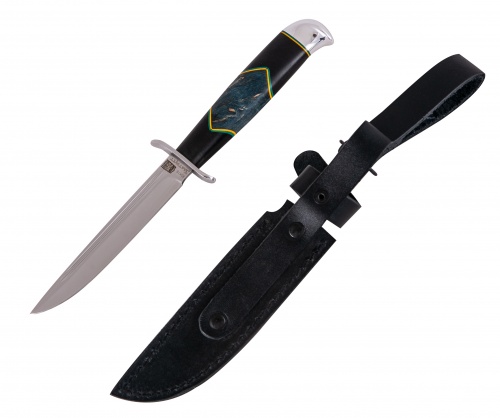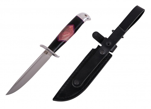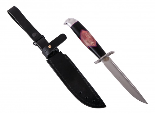 Нож финка вача - нквд (сталь 95x18, карельская берёза стабилизированная) в. Материал: клинок из стали 95x18; рукоять из ореха; тыльник, гарда - алюминий; кожаные ножны. Техника исполнения: токарные и слесарные работы, полировка. ? times;сталь Тип стали Кованная 95x18 Общая длина, мм 250 Длина клинка, мм 127 Ширина клинка, мм 18 Толщина клинка, мм 2.4 Твердость клинка, HRC 58 Вес ножа, кг 0.095 Вес брутто, кг 0.165