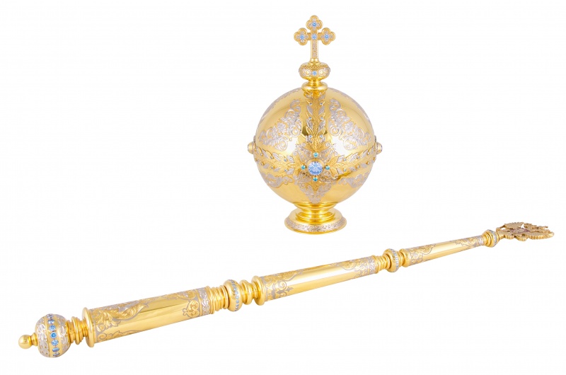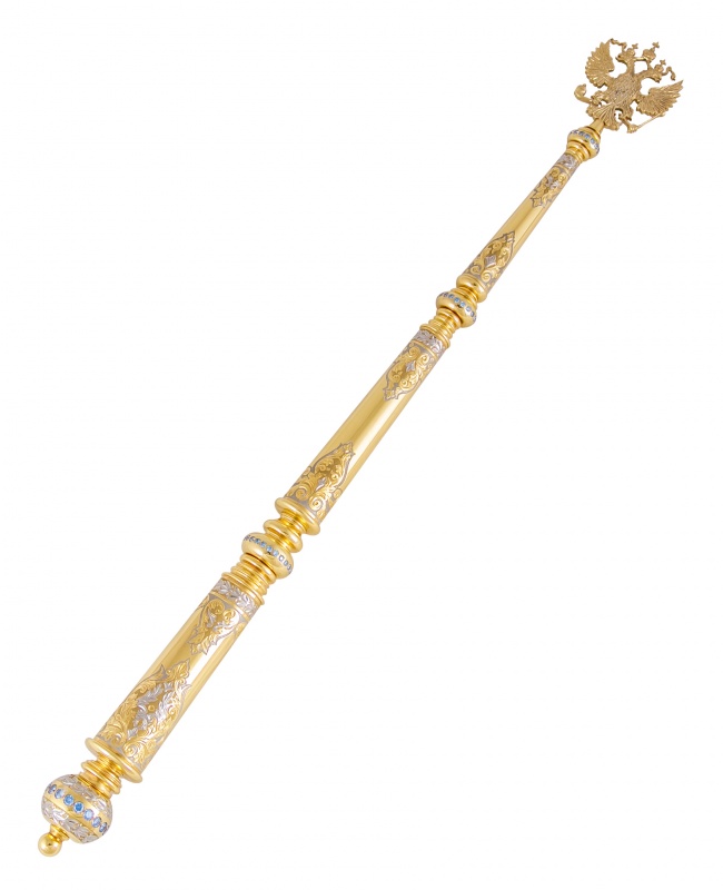Сувенир «Скипетр и держава» изготовлен из высококачественной латуни. Это немыслимо роскошный и эксклюзивный подарок, покрытый золотом. Его украшает безумной красоты Swarovski кристаллы и оригинальная многогранная гравировка. Этот, несомненно, царский сувенир будет служить гордостью любого дорогого интерьера, а его обладатель будет купаться в лучах славы и служить авторитетом для коллег.