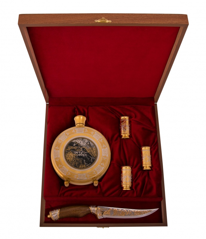 Набор охотничий "утиная охота" (фляга большая, нож, 3 стопки) з