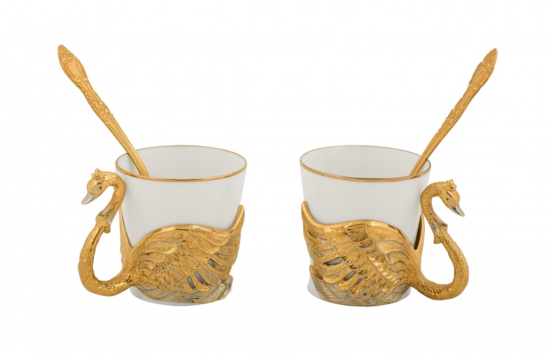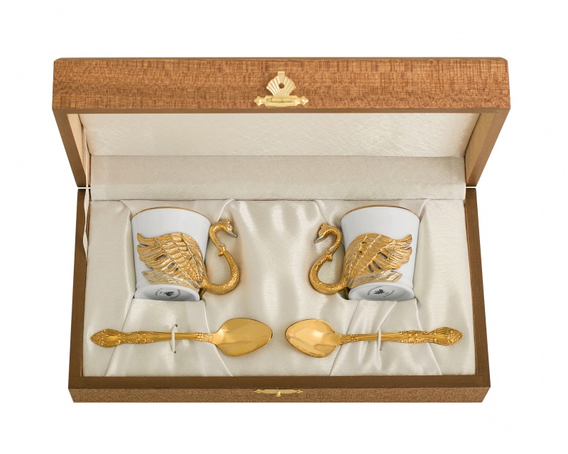 Набор кофейный "лебеди" ( 2 чашечки, 2 ложечки ) златоуст