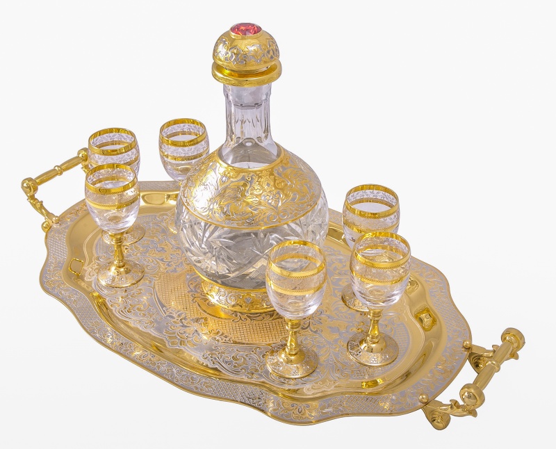 Набор водочный "кристалл" (графин, 6 рюмок, поднос) златоуст