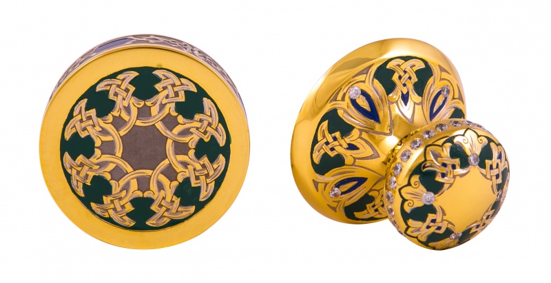 Печать малая с фианитами и эмалью "достаток" златоуст. Материал: латунь, фианит. Покрытие: золотом 999,9; никелем. Техника исполнения: токарные и слесарные работы, рисовка кистью на металле, многоступенчатая гравировка иглой по лаку, травление, ручная подрезка, полировка. Бесспорно, самым желанным и дорогим подарком всегда было и остается изделие ручной работы. К таким описаниям подходит малая печать «Достаток». Это эксклюзивная печать выполнена в самых лучших традициях стиля и роскоши. Она изготовлена из высококачественной латуни, покрытая золотом и никелем. Уникальность ей придает двухцветная эмаль и драгоценные камни. Размеры: Высота: 55 мм. Ширина: 50 мм. Покрытие Гальванический метод