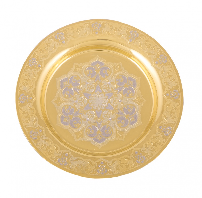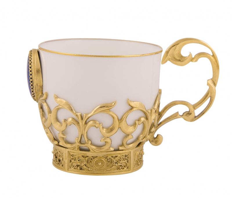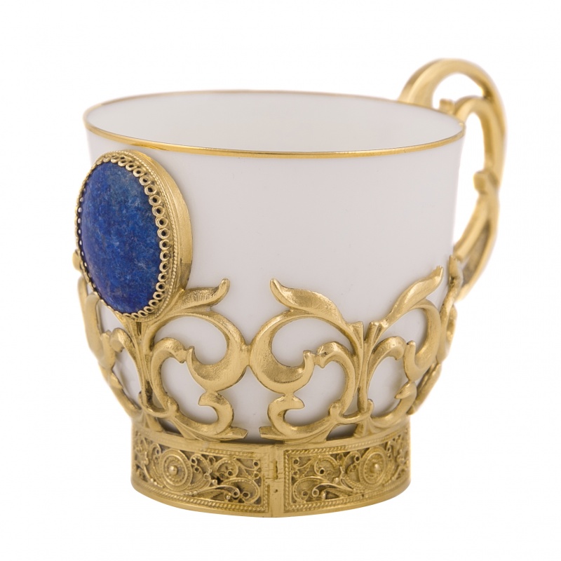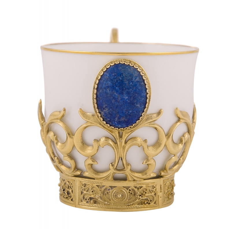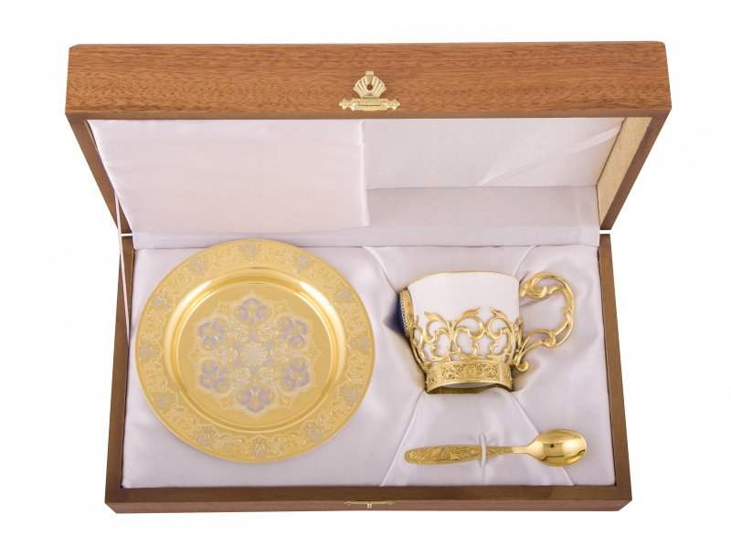 Любители ароматного кофе по достоинству оценят кофейный набор «Лазурит», преподнесенный в качестве оригинального подарка. Тарель из латуни, покрытая золотом, оригинальная чашка из костяного фарфора и ложка – настоящие произведения искусства, изготовленные вручную златоустовскими мастерами. Эксклюзивный набор выполнен в единственном экземпляре.
