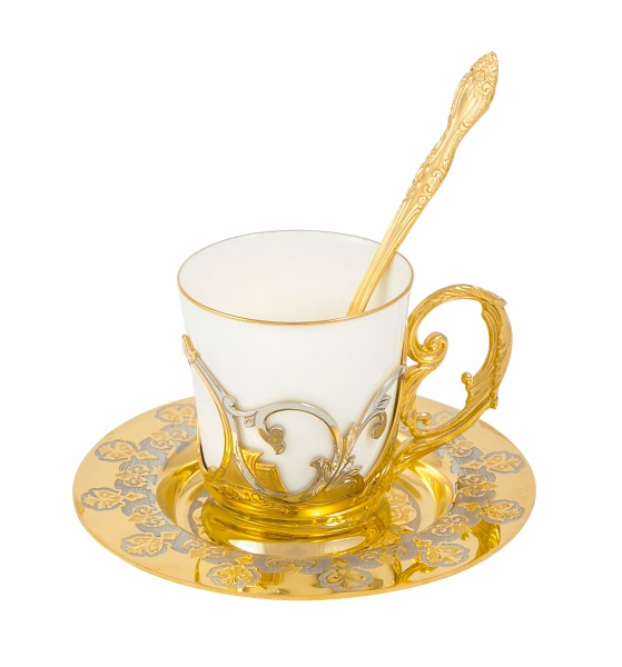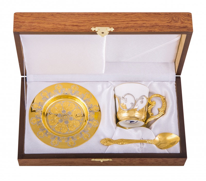 Набор кофейный "доброе утро" (тарель D 110, чашка, ложка) злато