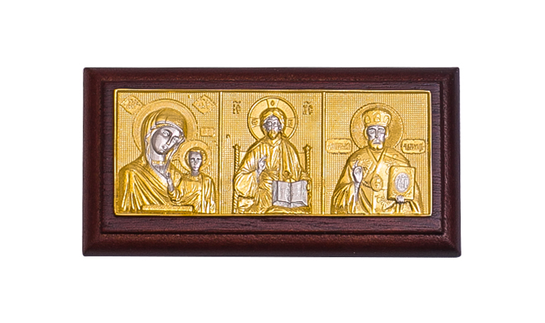 Автооберег "православный" златоуст. Материал: латунь. Покрытие: золотом 999,9; никелем. Чтобы порадовать автолюбителя, подарите ему оригинальный автооберег «Православный». Эксклюзивное изделие выполнено их латуни и покрыто золотом и никелем. На лицевой стороне – триптих «Спаси и сохрани». Изображение трех святых выполнено с использованием метода многоступенчатой гравировки и рисовки по металлу. Оберег станет верным спутником христианина в поездке. Покрытие Гальванический метод