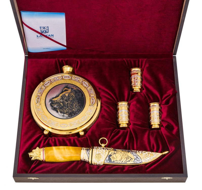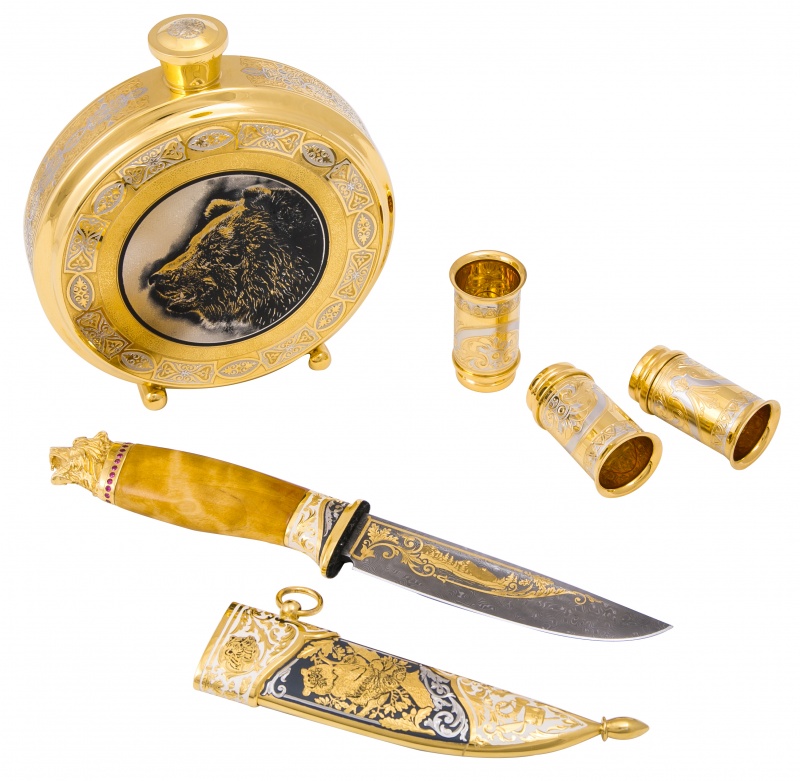 Набор охотничий "медведь" (фляга большая, нож цм, 3 стопки) зла