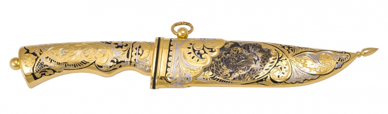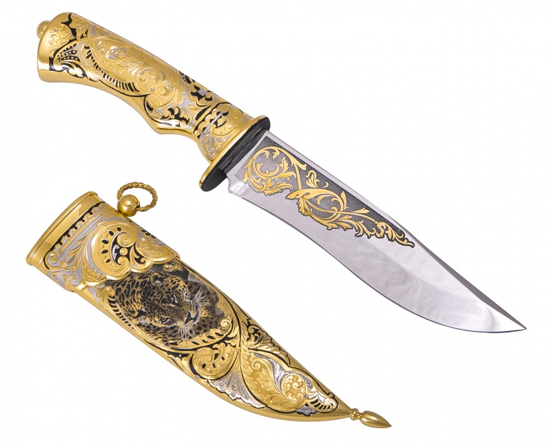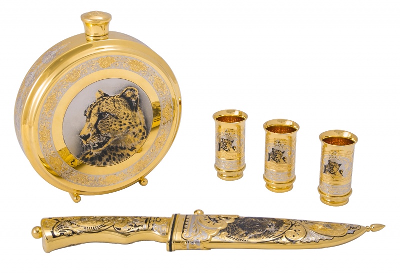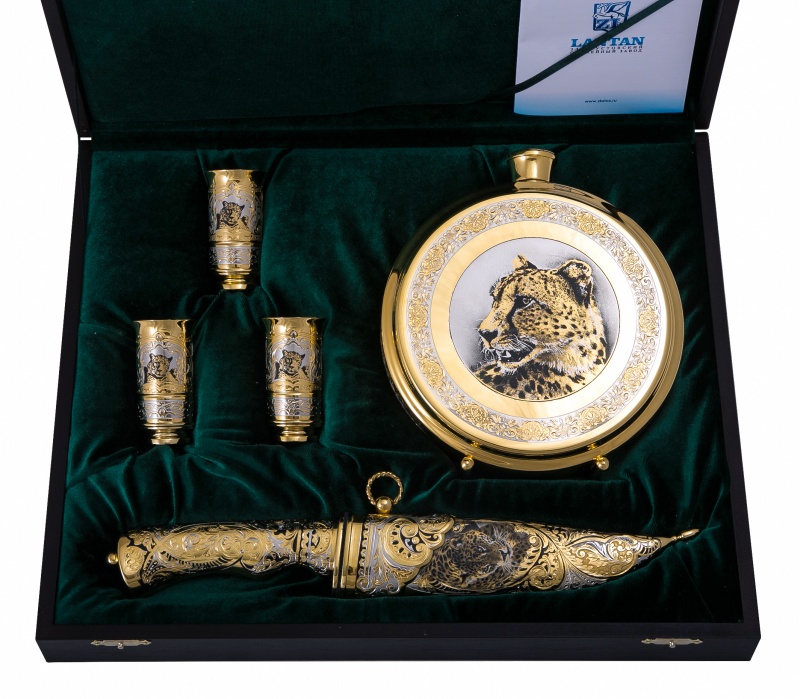 Набор охотничий "хищница" (фляга большая, нож цм, 3 стопки) злат
