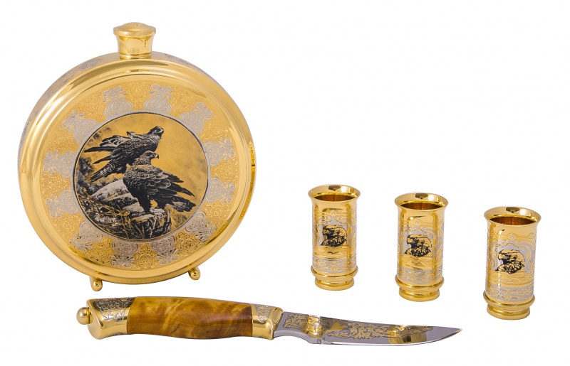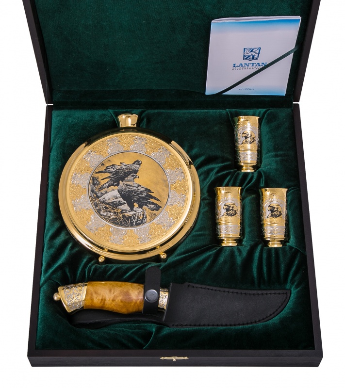Набор охотничий "ястреб" (фляга большая, нож в коже, 3 стопки) з