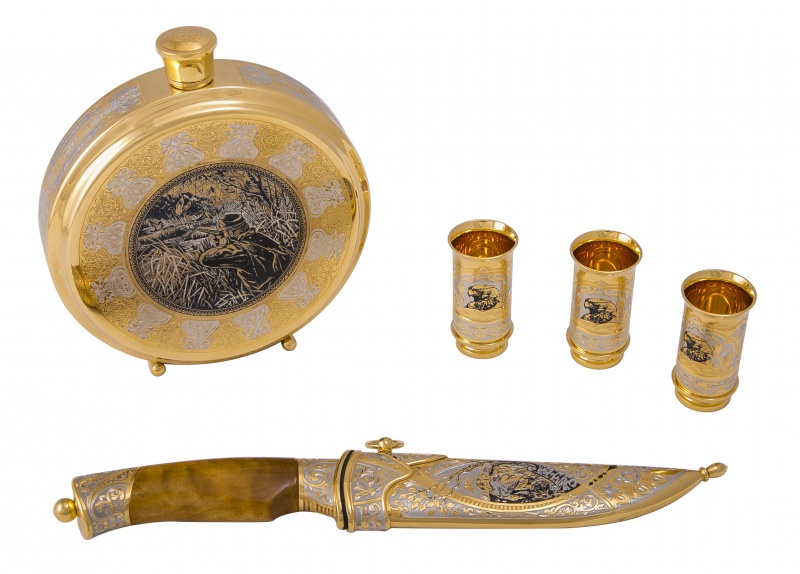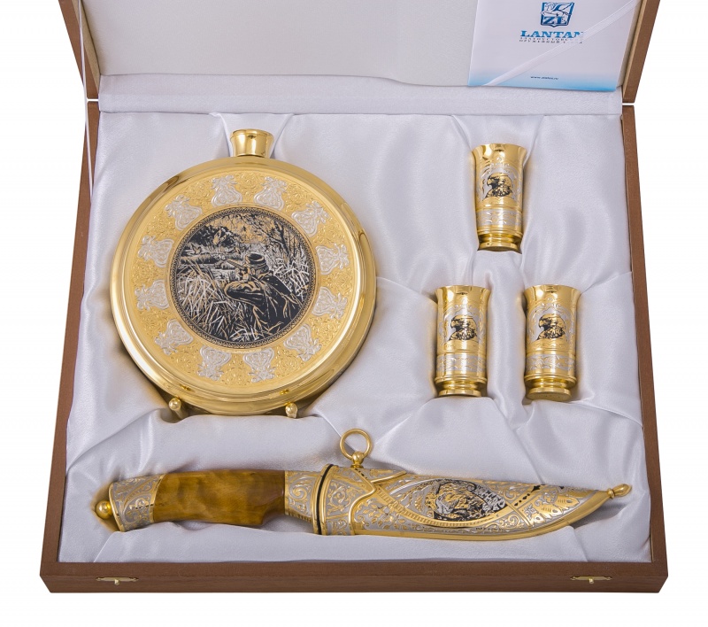 Набор охотничий "сезон охоты" (фляга большая, нож цм, 3 стопки)