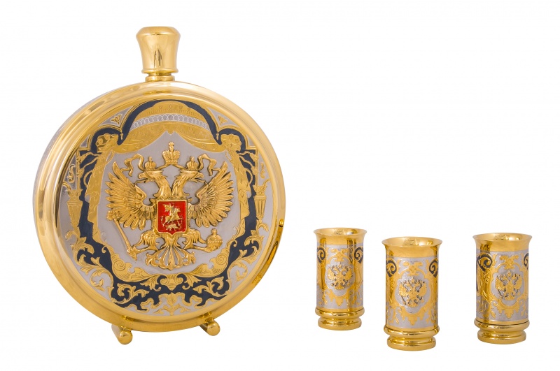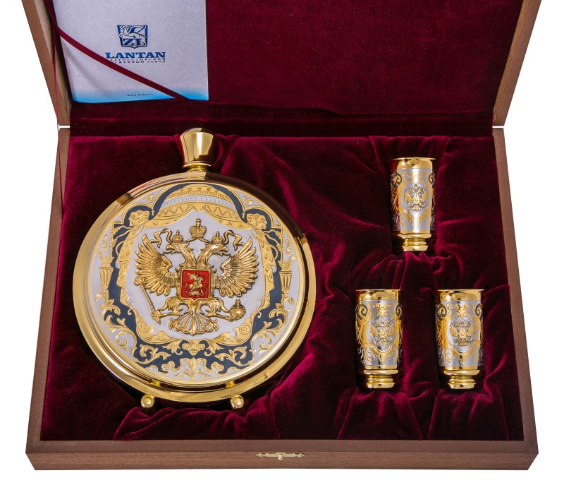 Набор охотничий "гербовый" (фляга большая, 3 стопки) златоуст