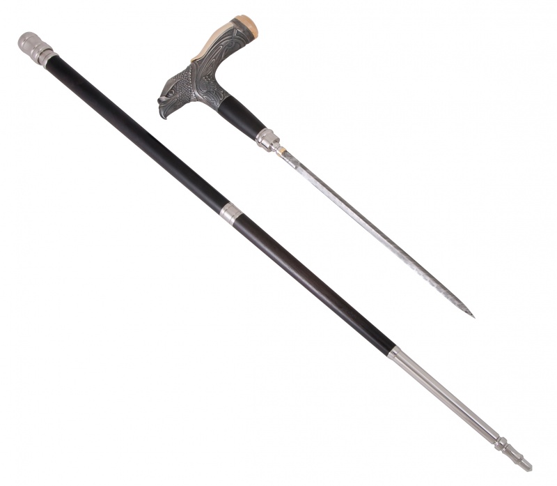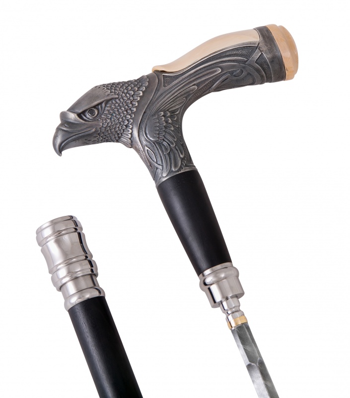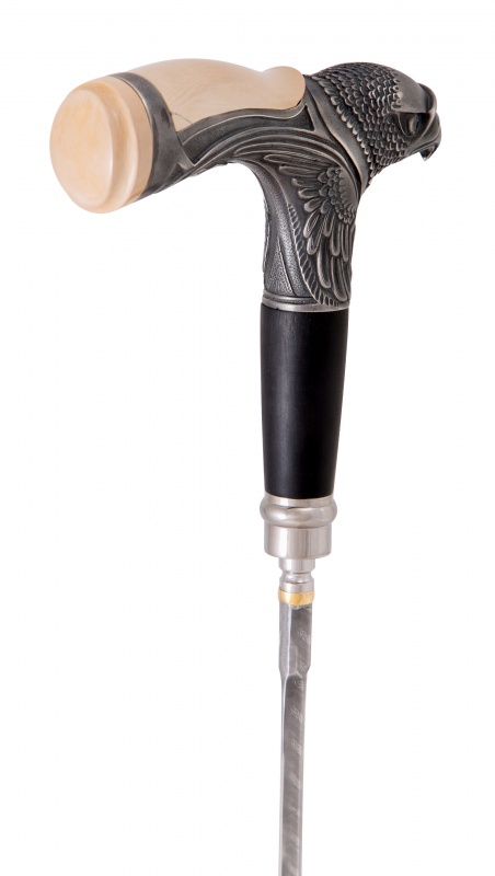Трость "сокол" со стилетом из дамасской стали и серебряной рукоя