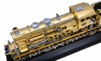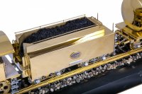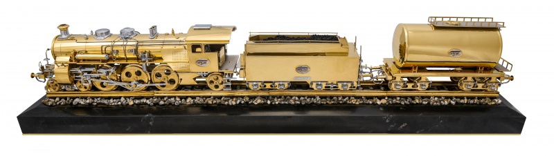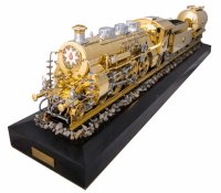Сувенир золотой состав от «златоустовский оружейный завод «лантан». Сувенир "Золотой состав" необыкновенно красивый, уникальный подарок, ручной работы. Шикарное произведение прикладного искусства, созданное по специальному заказу. Редкий образец старинной коллекционной модели паровоза, выполненный в лучших традициях Златоустовской гравюры на металле. Лучшие Мастера-оружейники на протяжении нескольких месяцев трудились с душой для воссоздания необыкновенно красивой модели. Выполнен из цветных металлов, красивейшего природного камня (яшма). Сочетание покрытия золотом с роскошным блеском и ювелирных камней производит потрясающее впечатление, придает изделию объем, делает максимально выразительным. Работа примечательна не только материалами, использованными для создания, но и удивительным дизайном, высокой детализацией каждого элемента. Вся работа по созданию подарка проведена вручную. Даже самая мелкая деталь, воссоздана максимально точно. В качестве покрытия золото высшей 999,9 пробы, для придания коллекционного статуса изделию, выполненному в единственном экземпляре. Покрытие Гальванический метод
