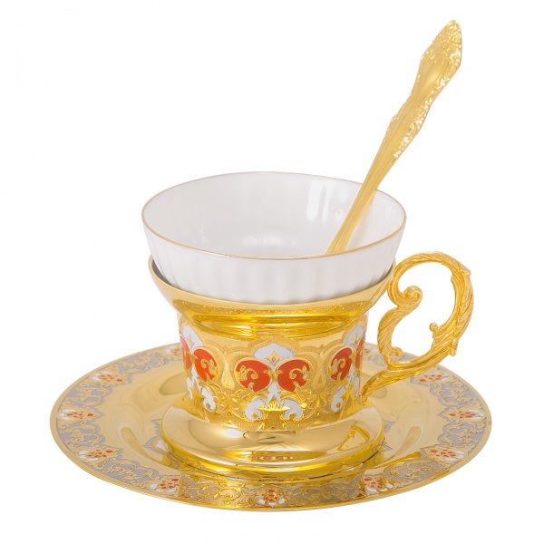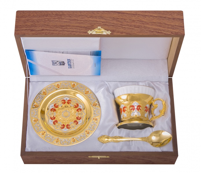 Набор чайный "яблочко наливное" ( тарель, чашка, ложка) златоуст
