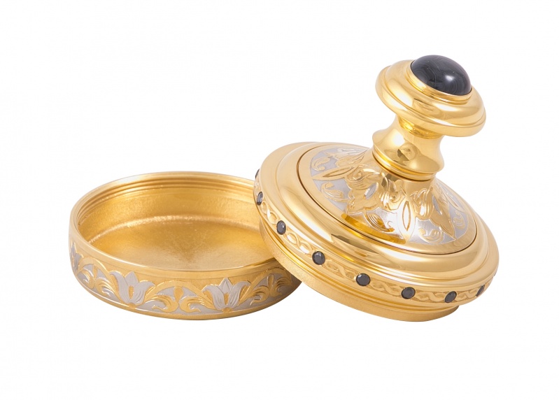 Печать малая с фианитами "фортуна" (агат) златоуст. Материал: латунь, агат, фианит. Покрытие: золотом 999,9; никелем. Техника исполнения: токарные и слесарные работы, рисовка кистью на металле, многоступенчатая гравировка иглой по лаку, травление, ручная подрезка, полировка. Эксклюзивная печать с фианитами – лучший подарок для делового человека. Она выполнена из латуни и агата, покрыта никелем и золотом, дополнена фианитами и украшена замысловатой художественной росписью. Такая печать без сомнений украсит рабочее пространство, подчеркнет индивидуальность и отменный вкус ее обладателя, его деловые качества, высокий статус. Красивая и в то же время функциональная, она станет неким талисманом, приносящим удачу в делах. Размеры: Высота: 60 мм. Ширина: 55 мм. Покрытие Гальванический метод