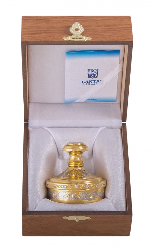 Печать малая с фианитами "достижения". Материал: латунь, фианит. Покрытие: золотом 999,9; никелем. Техника исполнения: токарные и слесарные работы, рисовка кистью на металле, многоступенчатая гравировка иглой по лаку, травление, ручная подрезка, полировка. Размеры: Высота: 60 мм. Ширина: 55 мм. Покрытие Гальванический метод
