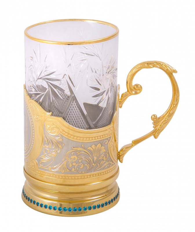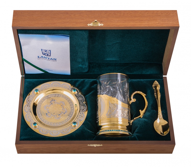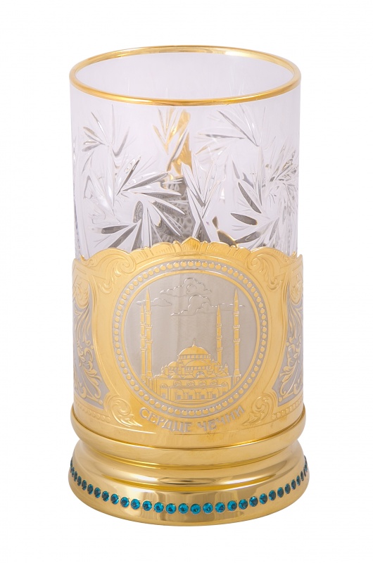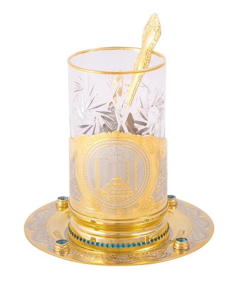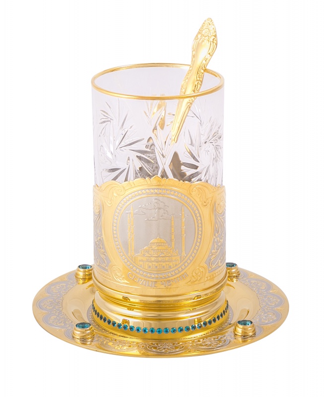Набор чайный "сердце чечни" (тарель 140, подстаканник, ложка) зл