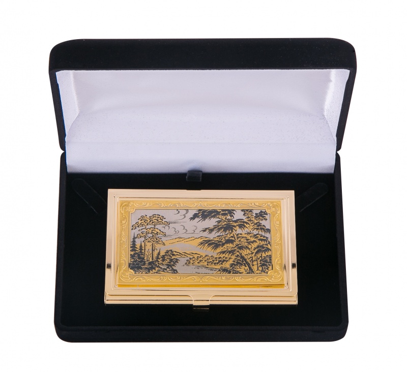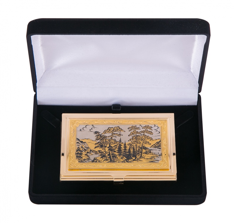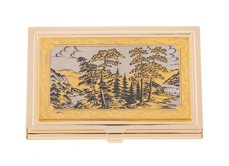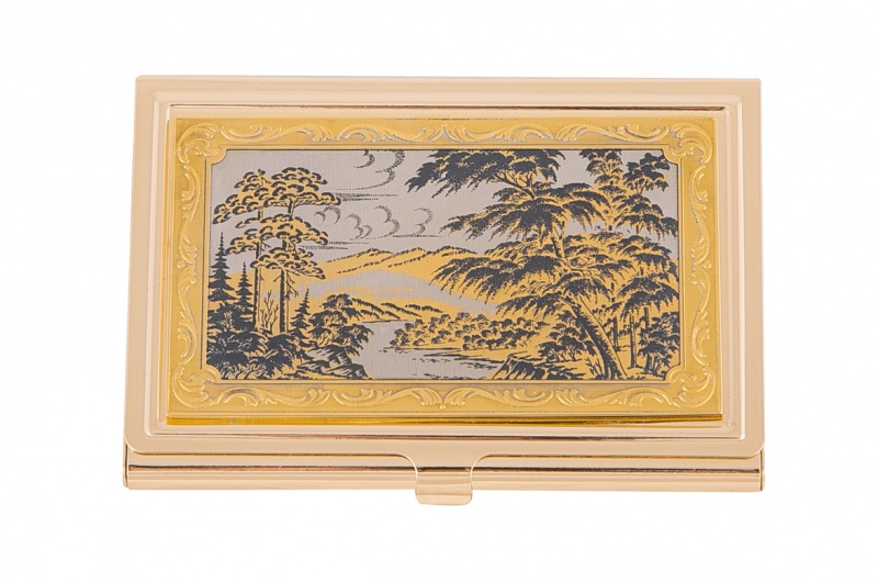 Визитница карманная "природа" (в ассортименте) златоуст. Материал: латунь. Покрытие: золотом 999,9; никелем. Техника исполнения: токарные и слесарные работы, рисовка кистью на металле, многоступенчатая гравировка иглой по лаку, травление, ручная подрезка, полировка. Аккуратная по своей форме визитница «Природа» успешно может быть использована, как мужчинами, так и женщинами. Незамысловатый дизайн и ручная роспись делают ее по-настоящему уникальной. А что ценят в таких вещах успешные люди? Стиль, гармоничность исполнения и эксклюзивность! Размеры: длина - 9,5 см ширина - 6,3 см толщина - 0,8 см Покрытие Гальванический метод