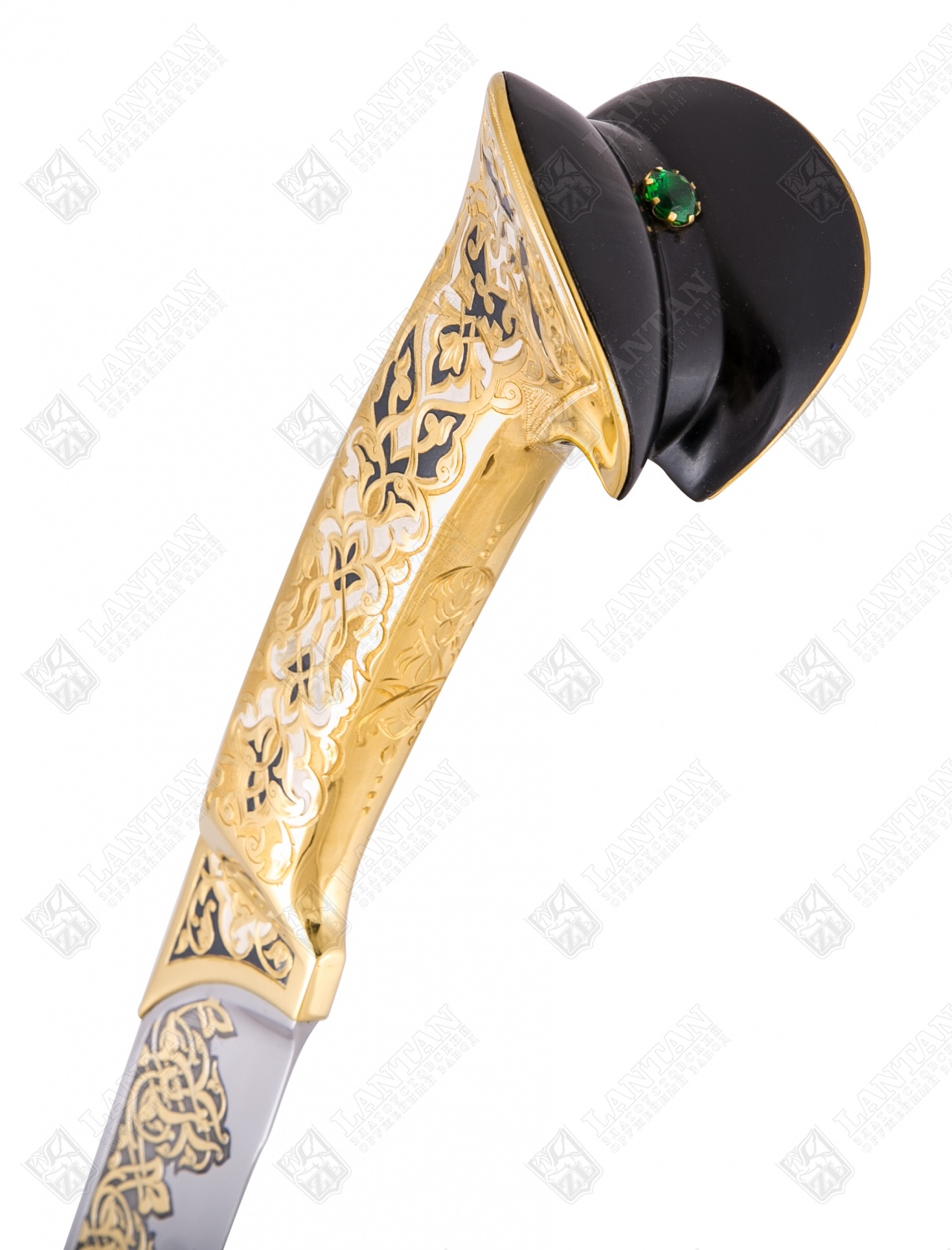 Еще несколько столетий назад ятаган представлял собой холодное оружие, наводящее на врагов настоящий ужас. Теперь, благодаря стараниям Златоустовских мастеров, его можно сделать изюминкой своей коллекции. Оружие выковано мастерами собственноручно, украшено камнями и ручной росписью. При желании можно добавить еще и гравировку, делающую ятаган действительно уникальным подарком.